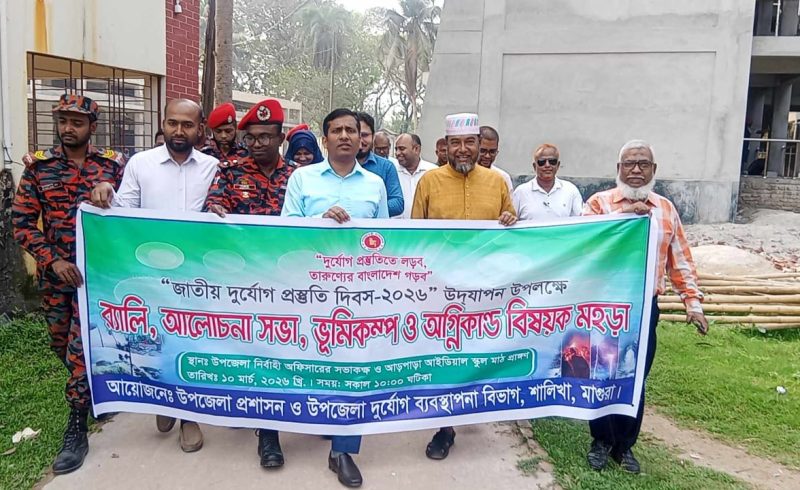 শালিখায় জাতীয় দুর্যোগ প্রস্তুতি দিবস উদযাপন উপলক্ষে র্যালি,আলোচনা সভা ও মহড়া অনুষ্ঠিত