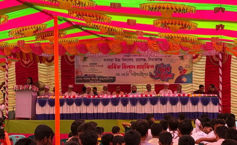 সিরাজগঞ্জের রায়গঞ্জ উপজেলার ধানঘরা উচ্চ বিদ্যালয়ে এসএসসি ২০২৬ ব্যাচের বিদায় অনুষ্ঠান
