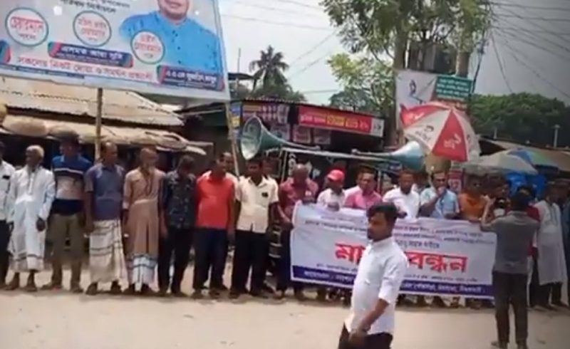 জলঢাকায় পৌর হাটবাজারের পুনরায় উম্মুক্ত ইজারা দাবিতে মানববন্ধন