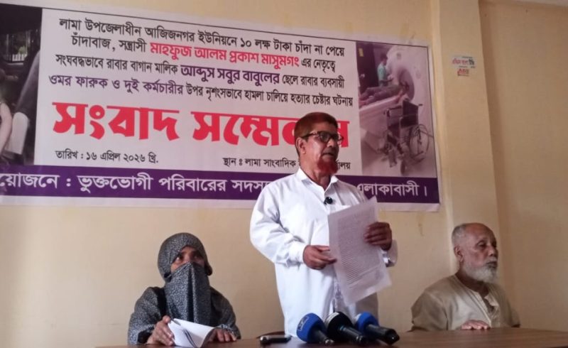 লামার আজিজনগরে ১০ লাখ টাকা চাঁদা না পেয়ে হামলার অভিযোগ, সংবাদ সম্মেলনে বিচার দাবি