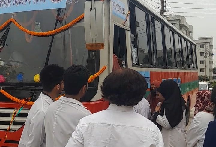 নীলফামারী মেডিকেল কলেজের শিক্ষার্থীদের যাতায়াত দুর্ভোগের অবসান ঘটাতে উদ্বোধন হলো বাস সার্ভিস