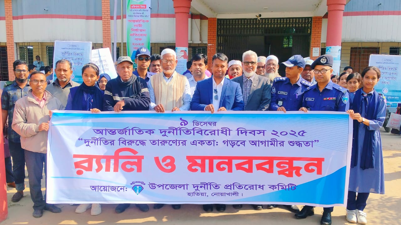 “দুর্নীতির বিরুদ্ধে তারুণ্যের একতা: গড়বে আগামীর শুদ্ধতা” এ প্রতিপাদ্যকে সামনে রেখে নানামুখী আয়োজনের মধ্য দিয়ে নোয়াখালীর হাতিয়ায় আন্তর্জাতিক দুর্নীতিবিরোধী দিবস পালিত হয়েছে।