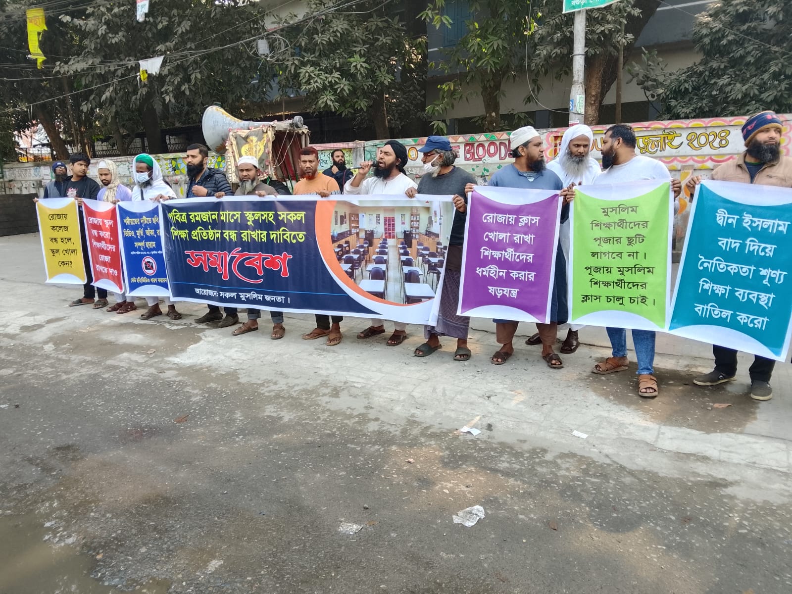 বগুড়ার সাতমাথায় রমজানে শিক্ষা প্রতিষ্ঠান বন্ধের দাবিতে মানববন্ধন