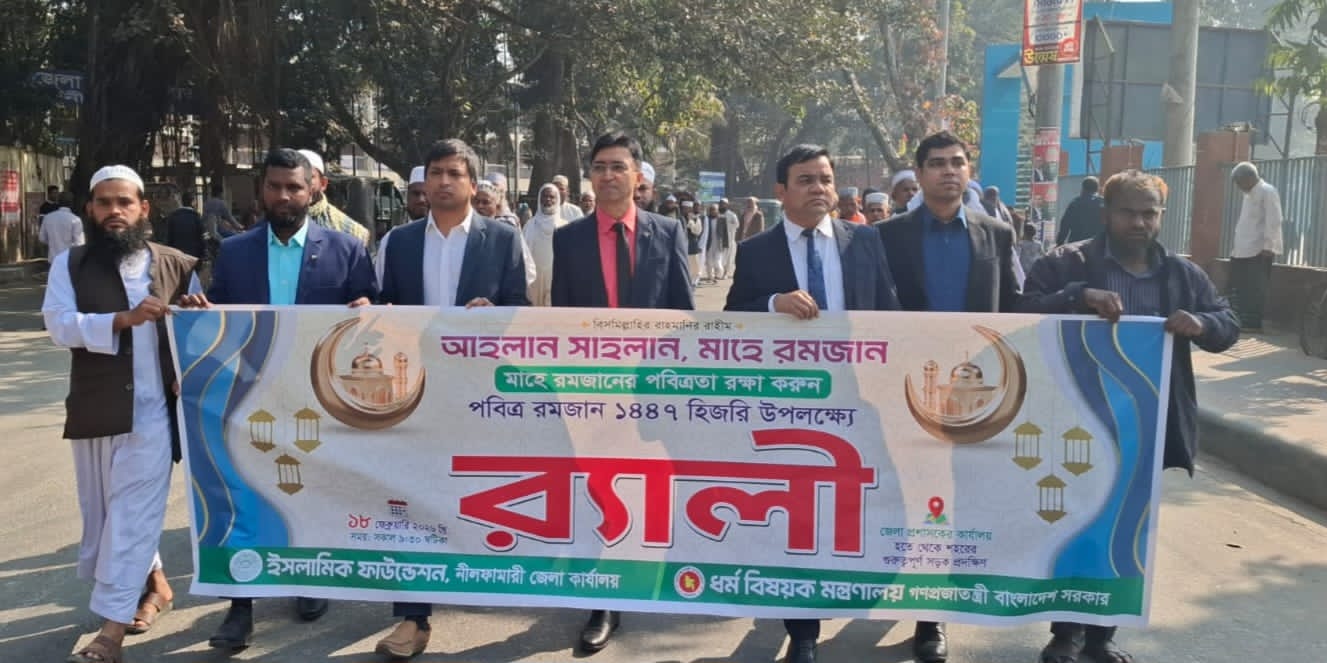পবিত্র মাহে রমজানকে স্বাগত জানিয়ে নীলফামারীতে ইসলামিক ফাউন্ডেশনের বর্ণাঢ্য র্যালি