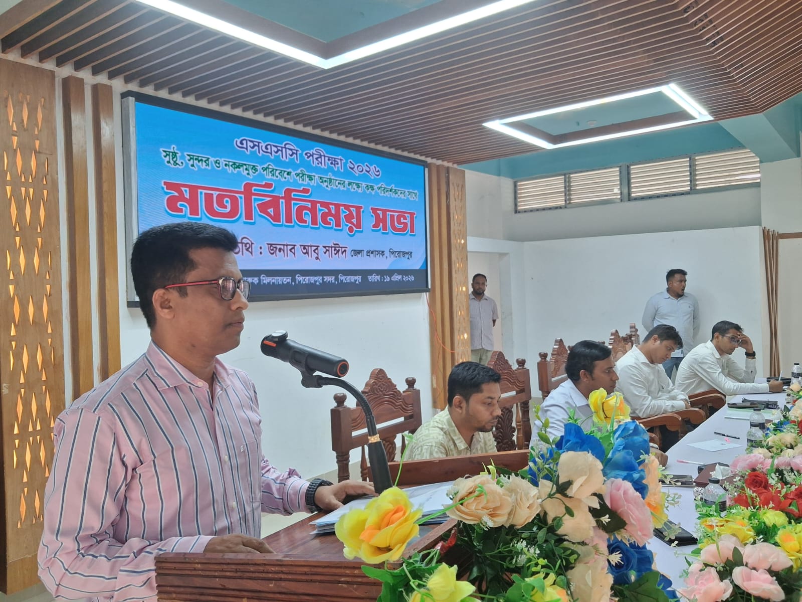 রবিবার (১৯ এপ্রিল)পিরোজপুর সদর উপজেলার শহীদ ওমর ফারুক মিলনায়তনে ২০২৬ সালের এসএসসি পরীক্ষা সুষ্ঠু, সুন্দর ও নকলমুক্ত পরিবেশে আয়োজনের লক্ষ্যে এক গুরুত্বপূর্ণ মতবিনিময় সভা অনুষ্ঠিত হয়েছে। সভায় প্রধান অতিথি হিসেবে উপস্থিত ছিলেন পিরোজপুরের জেলা প্রশাসক আবু সাঈদ।