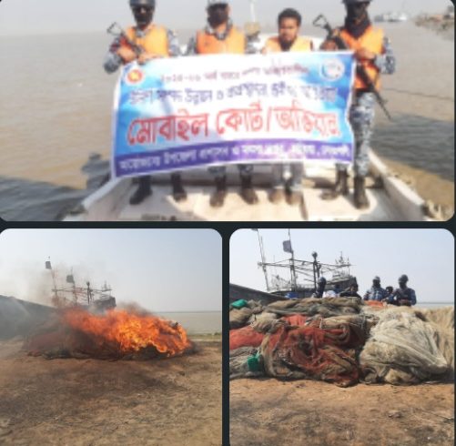 হাতিয়ায় ৩৫টি অবৈধ জাল পুড়িয়ে ধ্বংস